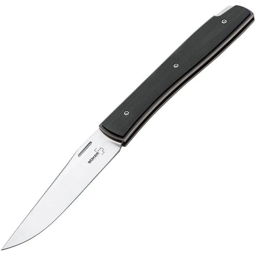 Model – BOP01BO786. Urban Trapper Lockback G10. 4.25 inch (10.8cm) closed. 3.5 inch (8.89cm) satin finish VG-10 stainless clip point blade. Black G10 handle. Pocket clip. Boxed.