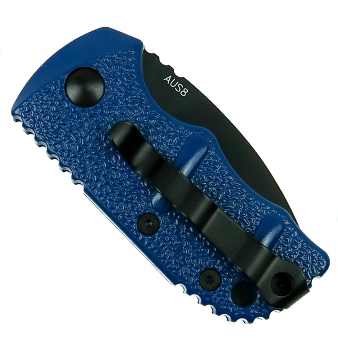 BladeOps is excited to announce the newest exclusive model to the ever-growing arsenal of Boker Kalashnikov auto knives–the Sub Kalashnikov featuring a sub-2″ blade. Quite possibly the perfect evolution of the most popular Boker automatic series ever, the Sub Kalashnikov boasts powerful push button action, a 1.95″ blade, and a full-width handle for a rock-solid grip. This exclusive model features a blue aluminum handle, all-black hardware, a drop point style blade in a black finish and the extra-long deep carry pocket clip is statically designed for tip up carry only on the traditional side of the handle.